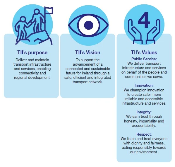 TII Board has ultimate authority for TII’s Statement of Strategy 2026-2030, setting the direction of the organisation. When devising a new Statement of Strategy, the Board communicates its priorities and ambitions for TII. The TII executive and staff then translate this / or these priorities and ambitions into a TII Strategy, with continual Board consultation and feedback before the Board ultimately adopts the strategy.